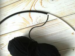 v omotaném kruhu: lehce naškrobená krajka vypnutá do kovového kruhu, který je omotaný bavlněnou přízí stejné barvy jako krajka (průměr 18 cm)