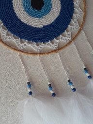 Háčkovaný lapač zlých snů se symbolem "Evil Eye", nejen pro dekoraci, ale i pro Vaší ochranu před zlými pohledy :o)